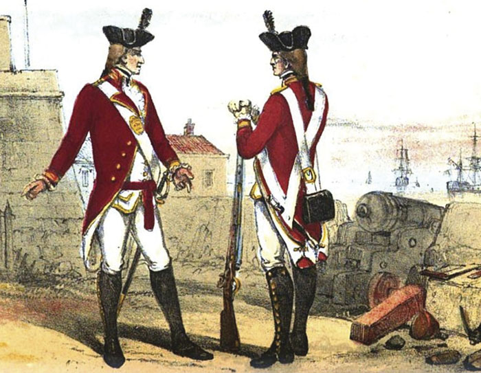 A captain in the America Regiment. A grenadier from the Napoles Regiment.